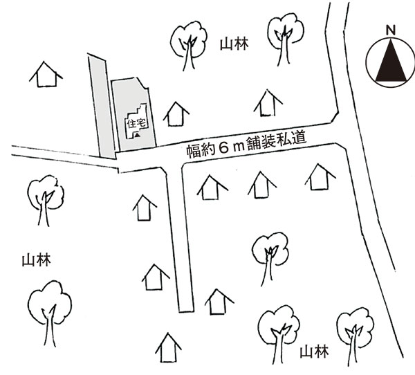 接道状況 | 南側が幅約6m舗装私道に接する。 |