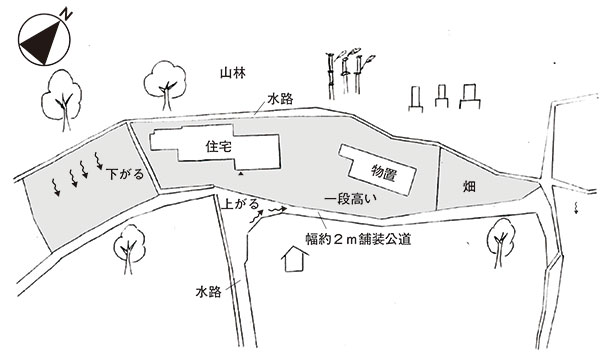 | 接道状況 | 南側が幅約2mの舗装公道に接する。 |