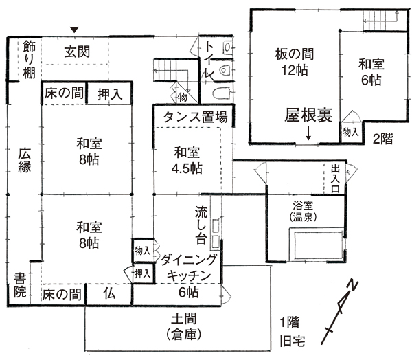 備考 旧宅 木造瓦葺2階建 1階110.95㎡(33.56坪)2階33.55㎡(10.14坪)延144.50㎡(43.71坪)昭和52年3月築、浴場 鉄骨造陸屋根2階 1階151.62㎡(45.86坪)2階90.26㎡(27.30坪)延241.88㎡(73.16坪)昭和50年7月築、昭和50年10月増築、固定資産税:215,300円