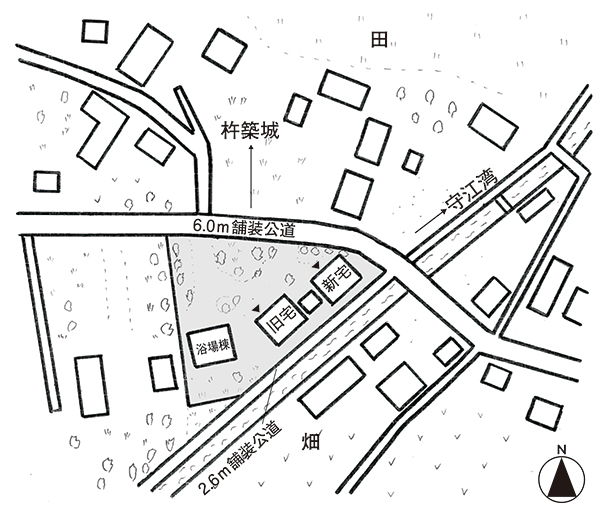 接道状況 北側が幅約6.0m、南側が幅約2.6mの舗装公道に接する。
