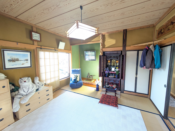 福島県棚倉町は東白川郡の中心地で、かつては棚倉藩(亀ケ城)の城下町として発展した歴史情緒を感じる街並みとなっている。中通りでは県南エリアに位置し、県内でも一年を通じて気候が温暖で、風と雪も少ないことから移住者も多い地域となっている。町中心部から鮫川村方面へ向かう道すがらの住宅地の一角にあるのが今回の物件。敷地は木造2階建の母屋、物置、カーポートのある縦列2台分の駐車場と南側の庭園がセットになっており、前面に遮る建造物がないため終日にわたり日当たりが良い。普段の買い物や駅・バス停までのアクセスも徒歩・自転車で完結出来るのは大きなアドバンテージだろう。