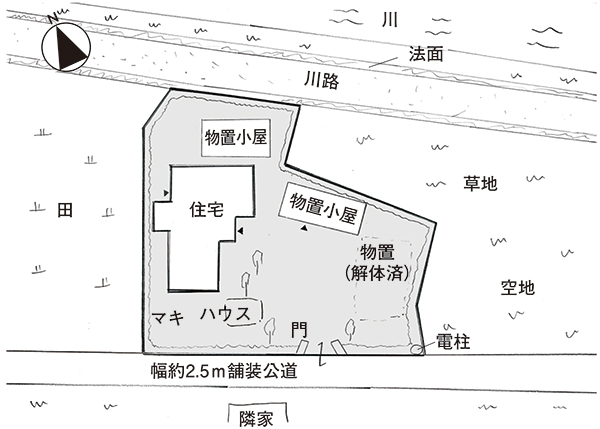 備考 | 物置・倉庫は未登記。再建築不可(合筆により敷地が変化していること、線引き前は宅地ではない為)。 |