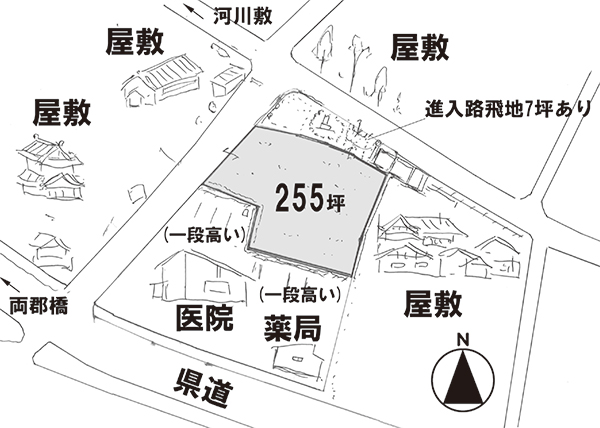| 接道状況 | 西側及び北側が幅約6.4mの舗装公道に接する |