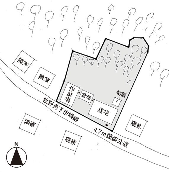 | 接道状況 | 南側が幅約4.7mの舗装公道に接する |