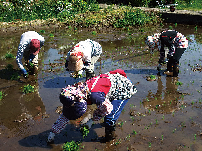 「孫の『きなり』が田植えデビュー」です。