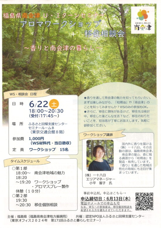 会津地方のU・Iターンセミナー・アロマワークショップ+移住相談会を南会津地方振興局が開催します!
