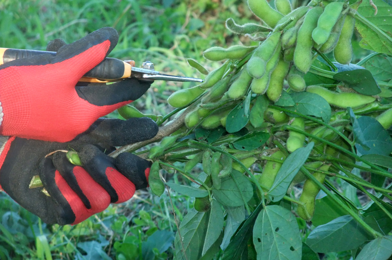 数日経ったある日、エダマメを知人に送ったり、冷凍保存をするという人達が畑に集合し、自分のエダマメを収穫していました。毎年20数個宅急便で送る人は、送り先から「おいしい~!」と好評で、早くから催促されているらしい。取り残しは乾燥させて来春味噌豆に使います。