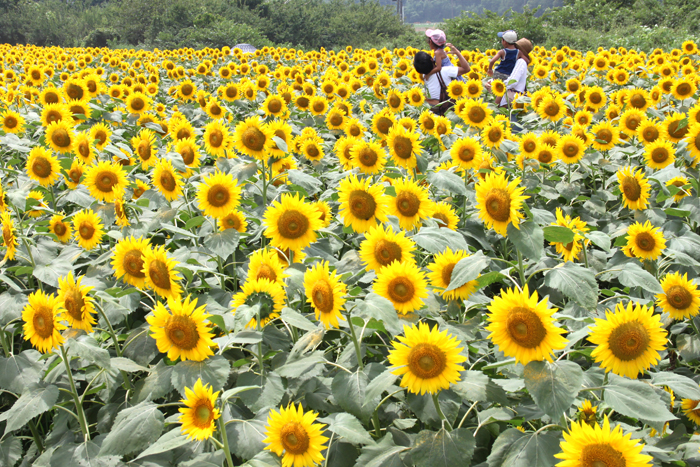 肥沃な北総の大地に9万坪の広大な敷地面積を誇る「成田ゆめ牧場」では、夏季限定で楽しめる「ひまわり迷路」が現れます。7つの会場(ひまわり畑)では開花時期をずらし植えられているので、行く度に違った迷路を楽しめるはずです(例年8月下旬まで開催されます)。