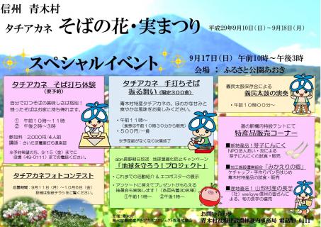 上田市と松本市の間に位置する東信州・青木村では今年もタチアカネ「蕎麦の花・実まつり」が9月17日に開催されます。