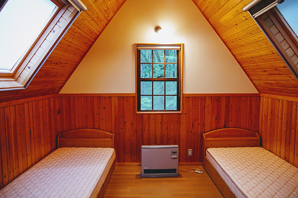 今は残念ながらすべての本は撤去されていますが、1万冊前後は入ると売主の弁。当然のことながら床と根太は補強してあり、設置費用はン百万円かかったそうです。誰にも邪魔されないこの山荘のパティオで過ごす読書のひとときを本人もこよなく愛してこられたようです。読書家や蔵書の多い方にはぜひともご覧いただきたい!
