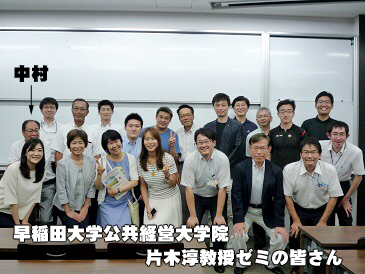 北杜市と早稲田大学公共経営大学院は平成20年度より、「地域活性化システム論」を官学連携で取り組んできています。本年度の片木淳教授のゼミテーマは右記に掲げたとおりで、5月下旬より大学院生10数人が北杜市内でフィールドワークを行なってきました。市長や市職員、移住相談員等との対話を通じた市の課題や移住定住の可能性の追求など幅広く意見交換をしてきましたが、その中で私・中村も「北杜市に住まわれる人々〜具体的事例と地域との関わり方〜」というテーマで1時間半ほど話をさせていただきました。そうしたことを踏まえ7月下旬には早稲田大学3号館でゼミ生が2班に分かれて「中間発表」を行ない、私も参加させていただきました。新しい地域コミュニティの場やSNSを活用した施策提案は今後の移住定住にも結びつく院生の労作でした。「本発表」は10月に行われる予定です。(八ヶ岳事務所 中村 健二)
