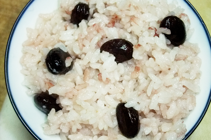 お赤飯のような赤空豆ご飯。食べるたびハッピーな気分になります。
