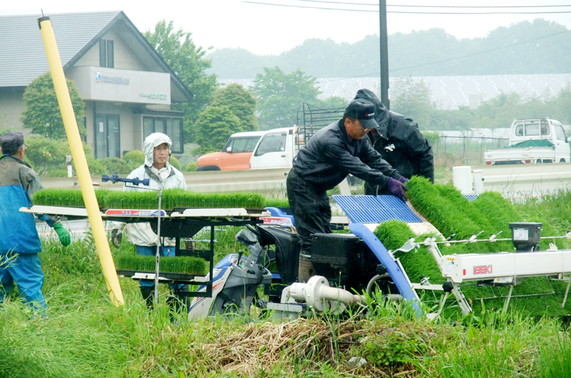 農家の後継者不足はどこも同じで、私達の地域でもほとんどの家が大きな機械を持っている人に農作業を委託しています。我が家でも田植えと稲刈りの作業は知り合いにお願いしています。今年もこちらへ移住された4人の方に苗運びと空箱洗いの応援をいただいて無事終了しました。
