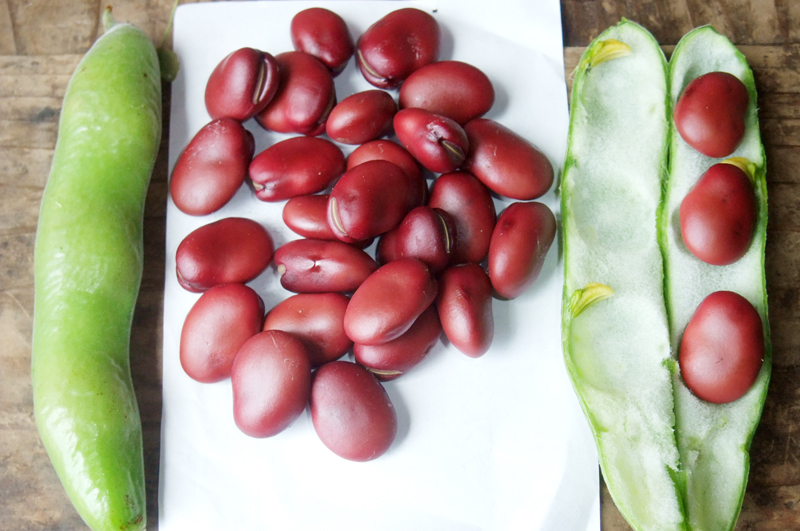 我が家の耕作面積は1・6haで、そのうち30aを皆さんの力をお借りしてはさ掛けのおいしい自然乾燥米を作っています。夜はお手伝いいただいた方達と早苗振(※さなぶり)のまねごとで豊作を祈りました。赤空豆 コンニャク作りイベント(昨年11月)の時、船橋から参加された女性から赤い空豆の種をいただきました。