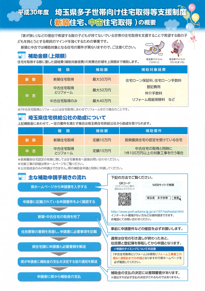 東京◆本部/多子世帯向け新築・中古住宅取得に補助金あります【埼玉県子育て応援制度】