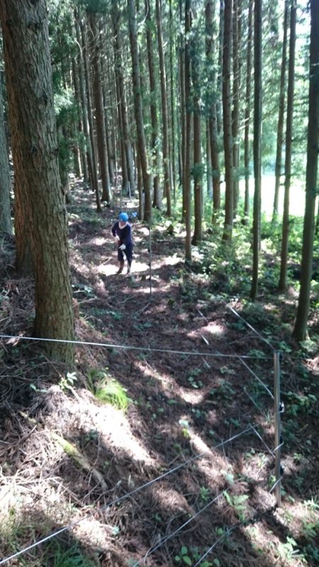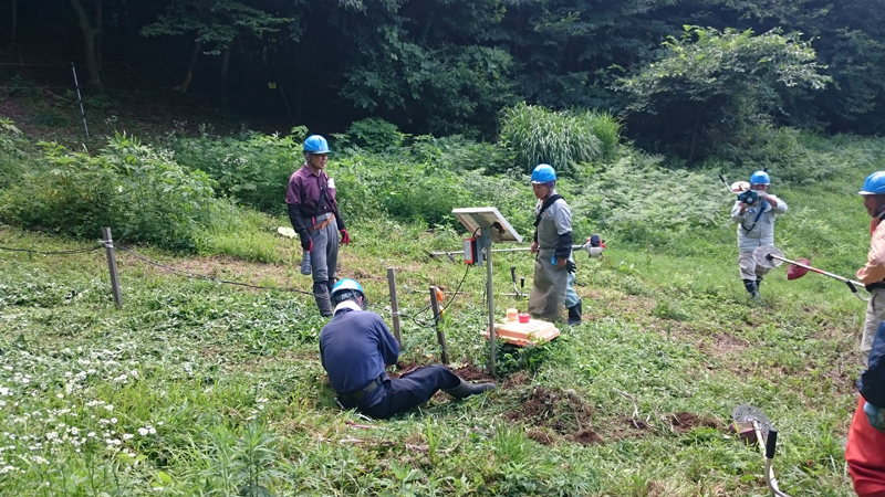 そこで、数年前に地域の住民で構成した組合の呼びかけにて、行政の「有害駆除助成金」を活用し、ソーラー発電による「電気牧柵」を集落の周囲の林との境に、延べ5キロに渡って設置しました。