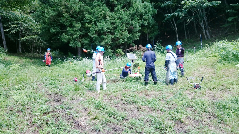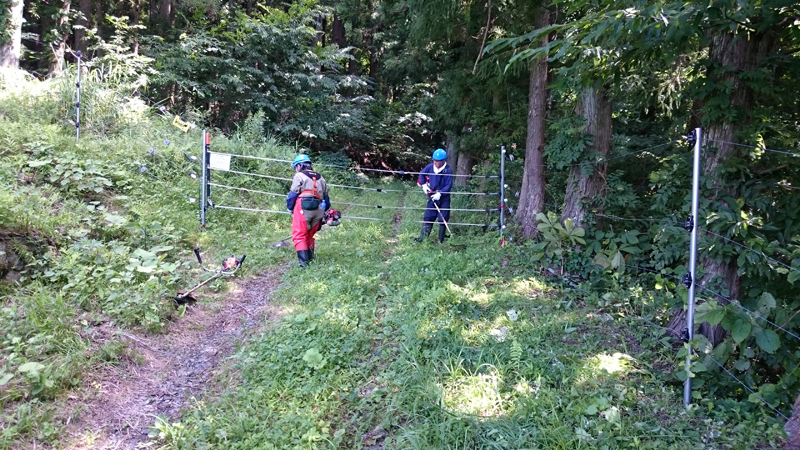 しかし慣れとは恐ろしく、跳躍力のあるものは、この電気柵を軽々飛び越えたり、中には電気ショックに鈍感なのか、お尻でこじ開けて侵入するものも現れる始末です。それでも、従前よりはかなり出没が減少してるので、当組合では年に数回は巡らした電気牧柵の下草刈りと、中には体当たりで倒された支柱等の補修作業を実施しています。