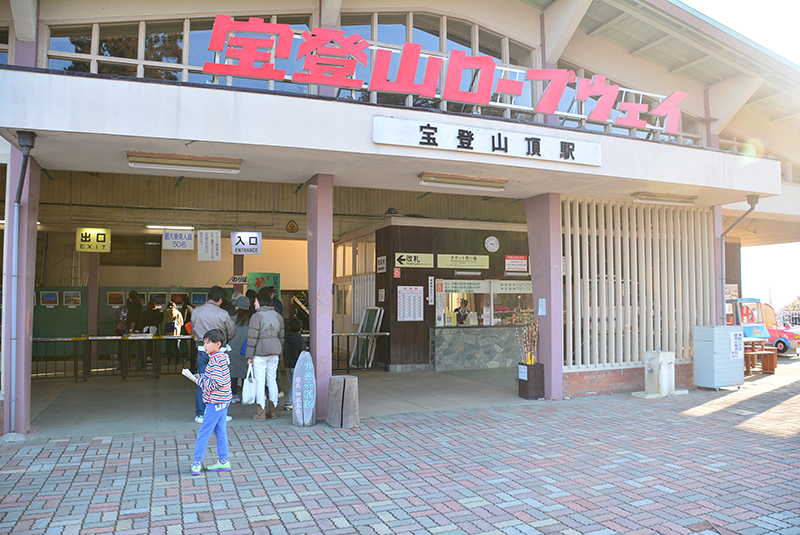 自家用車でお越しの方は宝登山神社を目の前にして左に曲がると、広大な駐車場(1日500円)があります。割とわかりづらい所にある宝登山ロープウェイ乗り場ですが、駐車場から見上げると看板が見えると思います。