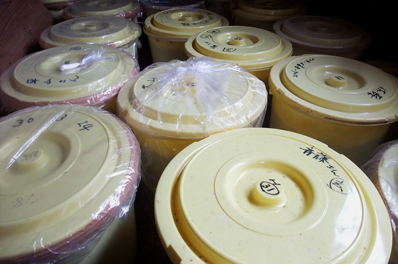 ▲油と違って味噌は手が掛かりません。そーっと静かに寝かせておけば、おいしい味噌ができあがります。一年後が楽しみです。