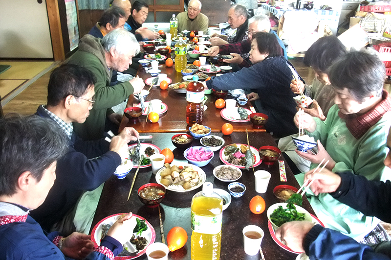 ▲田舎料理に舌鼓を打ちながらの宴会です。