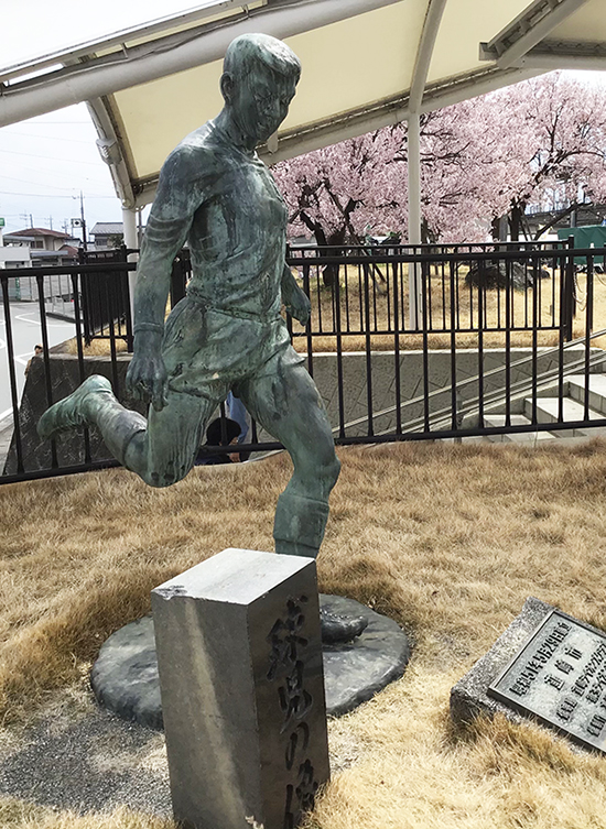 山梨県内には「質実剛健」を謳った公立高が多いように思う。日川、吉田、甲府商業、そして韮崎。それはまた「文武両道」の校風という旗印のもとに、人材が広く集まってきた証なのかもしれない。いまも県内の強豪校としてその名を知られる韮崎高校サッカー部は、横森巧(よこもりたくみ)先生が率いていた1980年前後の高校サッカー界において、華々しい活躍を見せていた。正月の高校サッカー選手権ではあと一歩のところで何度も優勝を逃したにもかかわらず、怒濤の攻撃を信条とするそのプレースタイルはわたしの脳裏に鮮明に焼き付いている。中央本線韮崎駅前には、1975年の高校総体で優勝した栄誉をたたえて「球児の像」が建てられている。「韮崎」というとわたしが最初に思い出すのがこのサッカーなのだ。