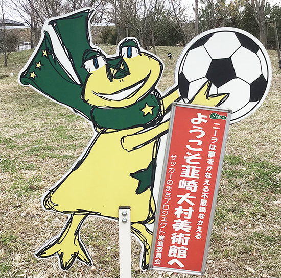 ▲韮崎大村美術館入り口にある「ニーラ」の看板。