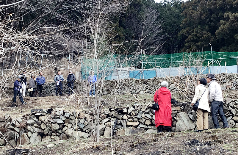 ▲旧三富村の古民家に付随するひな壇の農地も皆さんで見学。晴れて参加者様からご成約者様が誕生いたしました。