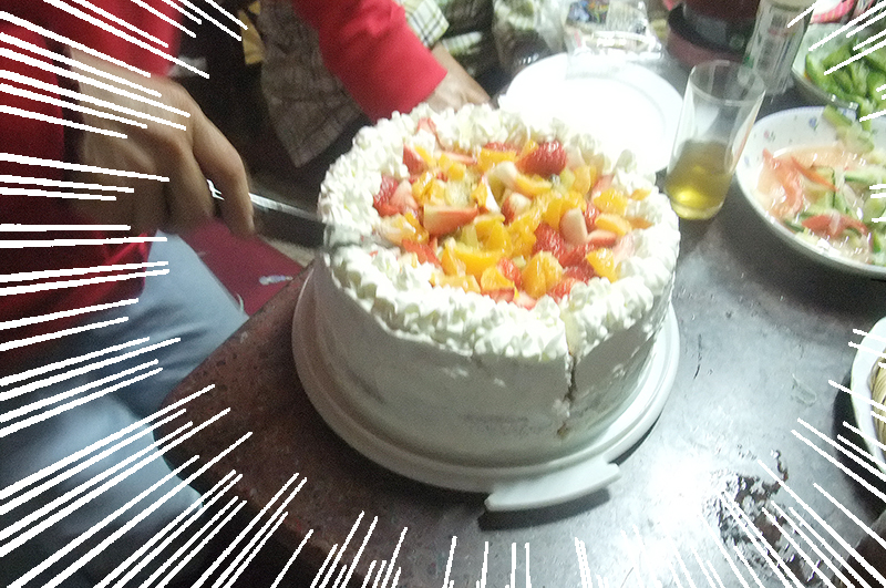 外は本降りの雨ですが、部屋の中はまるで暮れのカウントダウンを思わせる程の賑わいで大盛況です。途中で「ケーキ作って来たよ?!」とおいしい特製手作りケーキがサプライズで登場すると歓声が上がりました。そして平成に感謝のケーキカット?でその後、別腹を満たしました。