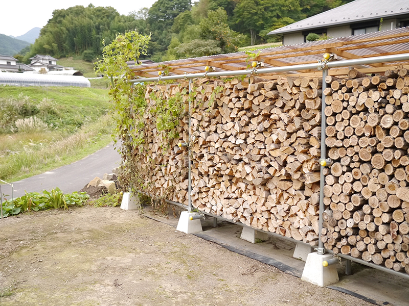 ▲冬になる前に用意された薪の山。