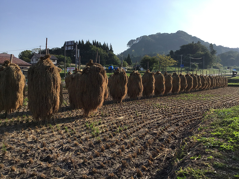 ▲刈田に一群の蓑笠があらわる(奥州市江刺梁川。2019年10月撮影)