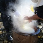もう労力的に無理かなーと思い、今年から「はさ掛け」を止めることに心を決めたのですが、稲ワラや籾もみ殻がらが欲しいという声に急きょ今年もやる事になりました。今では珍しい「はさ掛け」ですが、さすがに手刈りは出来ないのでバインダーで刈り取った後、はさに掛ける作業です。毎年お手伝いして頂いている仲間達は仕事の手際がよく、思いの外早く終わりました。