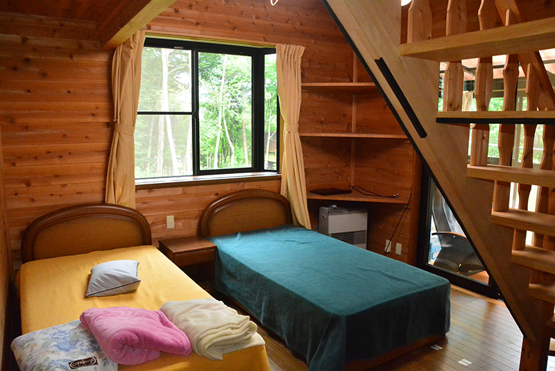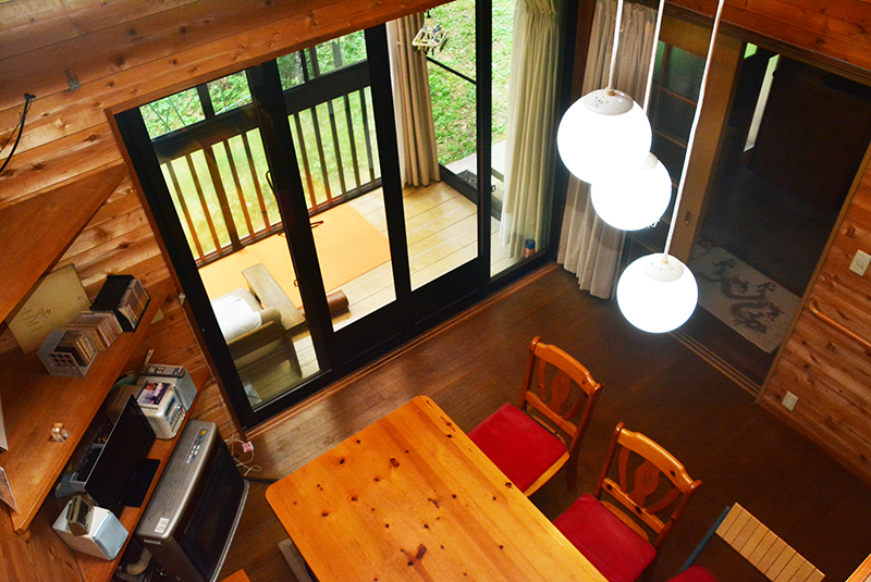 建物は山小屋風の建物で、和室部分を増築。一軒平屋に見えますが実は2階建て。床下部分に物置きスペースがあります。