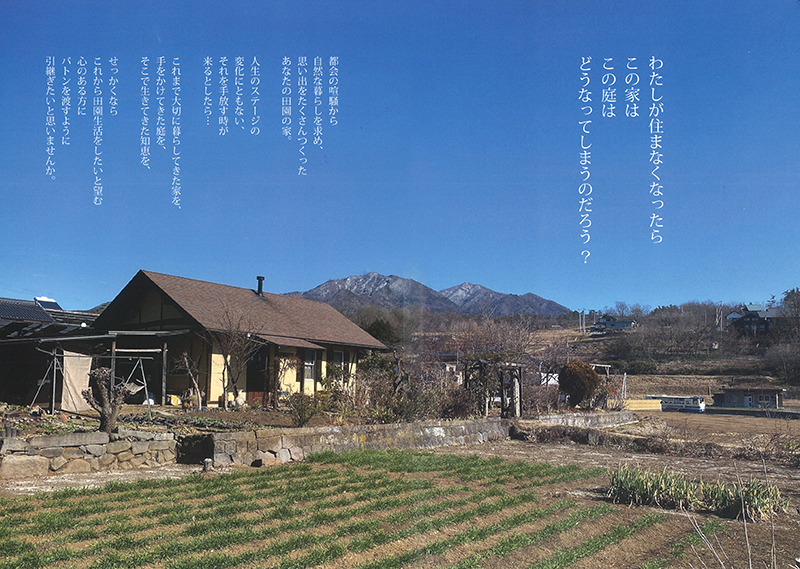 大切にされてきた家には限りない魅力がある都会の喧騒から自然の暮らしを求め、思い出をたくさんつくったあなたの田舎の家。人生のステージの変化にともないそれを手放す時が来るとしたら…これから田園生活をしたい人にバトンを渡すように引継ぎたいと思いませんか。