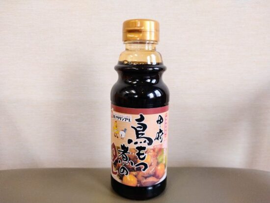 ▲スーパーで販売している「鳥もつ煮のタレ」