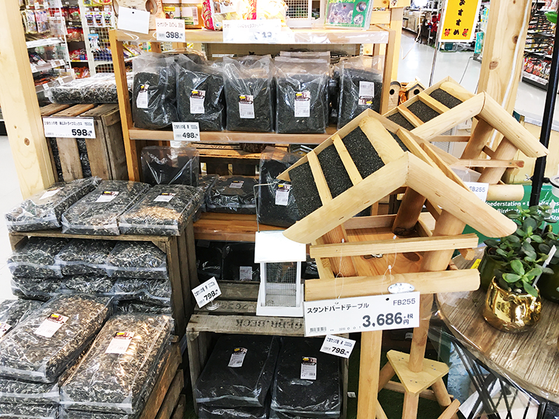 ▲北杜市のホームセンター。野鳥グッズが所狭し。