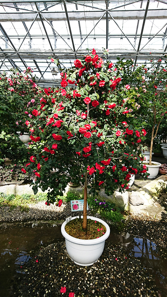 ▲薫り溢れる施設内の椿たち。
