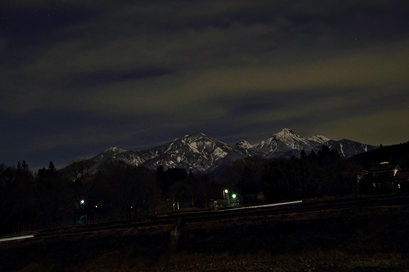 ▲月明かりに照らされ、ぼんやりと浮き上がる八ヶ岳。