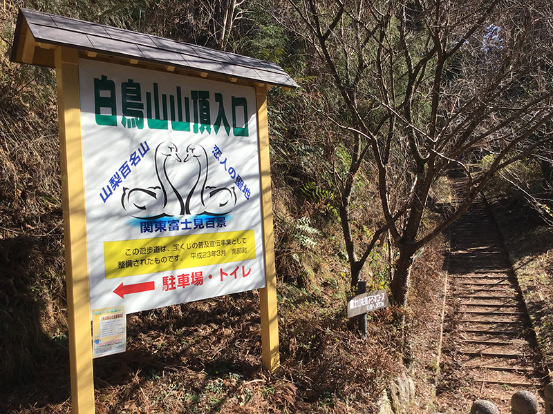 また、南部町内のさらに南にあり、静岡との県境の山が白鳥山(「しらとりやま」。山梨百名山のひとつ。標高五百六十七メートル)で、なんとここにも東征したヤマトタケルの伝説が残されている。その開けた山頂から、すそ野まで大きく伸びた正面の富士山剣ヶ峰(標高三千七百七十六メートル)に飛び立った白鳥を見届け、進軍の道を定めたというのだ。近在の集落「万沢(まんざわ)」はアイヌ語で日の当たる場所なのだという。