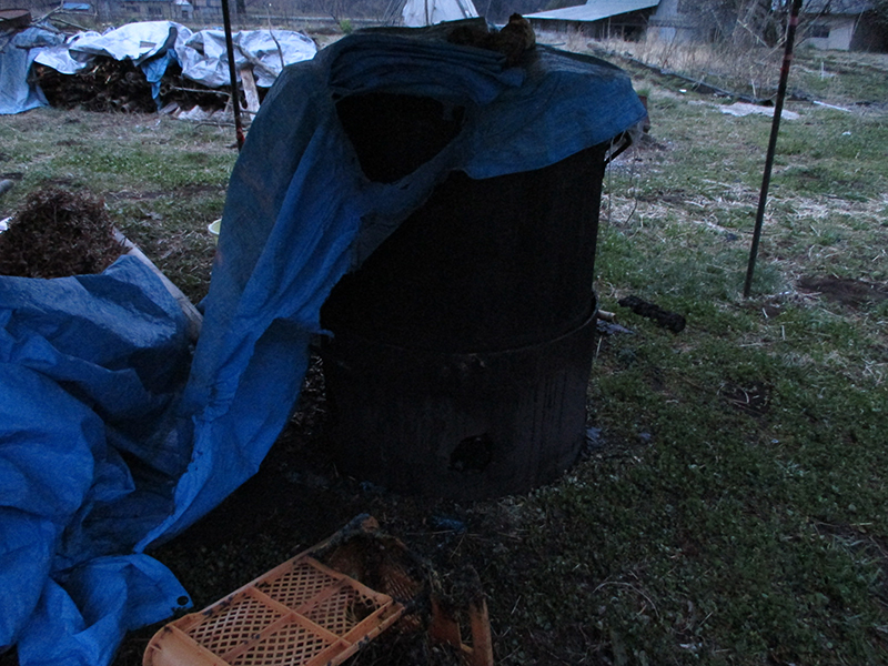 はじめ何の火か分からず、近くに行ってびっくり!大豆の入っている大釜の下のカマドの中が燃え、上に掛けておいたブルーシートに移り、溶けて垂れ落ちた火が、近くにあった豆殻の入ったプラスチックのカゴに燃え移りえらい事になっている・・・驚いた私は「水!水!」とうわずった声を上げて叫ぶと、我が夫は水道からホースを引っぱって来て消火してくれました。