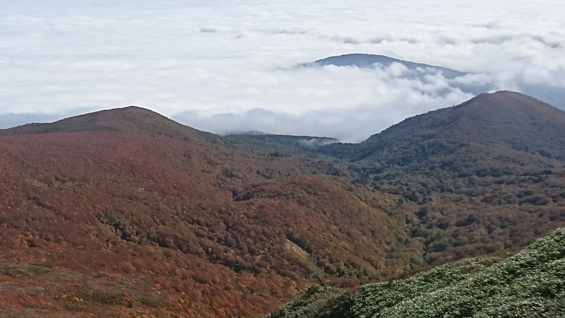 ▲山頂より。運が良ければ青空と雲海と紅葉のコラボも見られます。