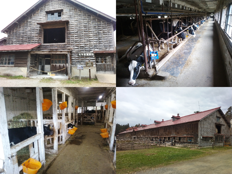 場内は広く、いくつかのエリアに分かれており、最初に紹介するのは小岩井農場酪農の発祥の地となった上丸(かみまる)牛舎。このエリアには国登録の重要文化財に指定されている牛舎やサイロ等の建物があり、現在も乳牛の生産が行われています。牛の見学も可能ですが、出入り口では靴底の消毒をしましょう。