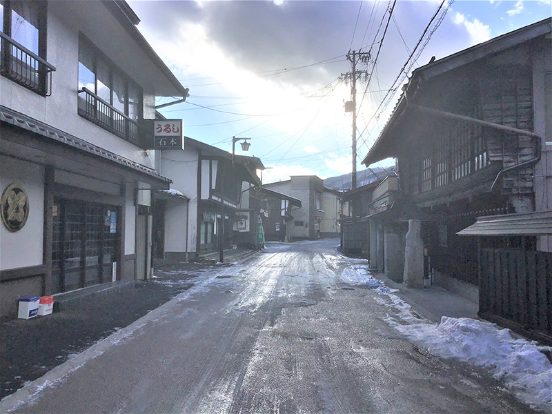 そこを過ぎた高台からは木曽平沢の町並みが一望できた。木曽漆器の本場であり、「重要伝統的建築物群保存地区」に指定されている職人の町である。目指す物件はその中心地のメインストリート沿いにあるのだ。沿道では除雪に精を出す住民も多く、どこかタイムスリップしたような感覚だ。