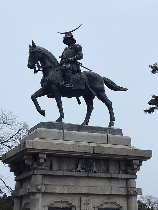 ▲あまりに有名な青葉城の伊達政宗公像。