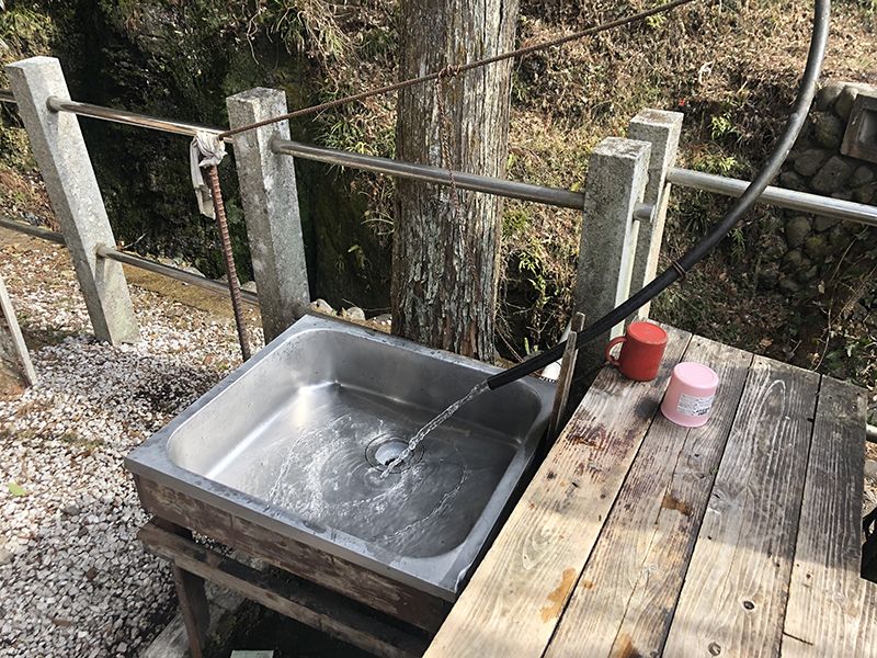 そこは上名栗地域の小さな社、新井不動尊の脇にある「不動の名水」。この水を目当てに訪れた車が路上駐車しているようで、わりと県外ナンバーの車も見ました。