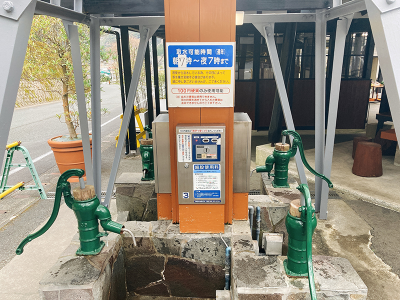 お話を聞いてみると、お米の炊きあがりやコーヒーは水道水と違うとのこと。100円で15リットルの取水が可能で、併設した食堂で試飲することもでき、こんなスポットがあったとは気づきませんでした。