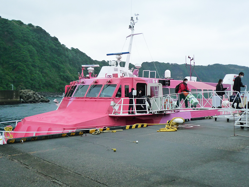 ▲大島町岡田港での高速船下船。物件調査にて初上陸の際は心踊るものがあります。