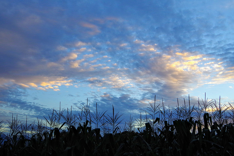 ▲夕暮れのトウモロコシ畑。(北杜市高根町)