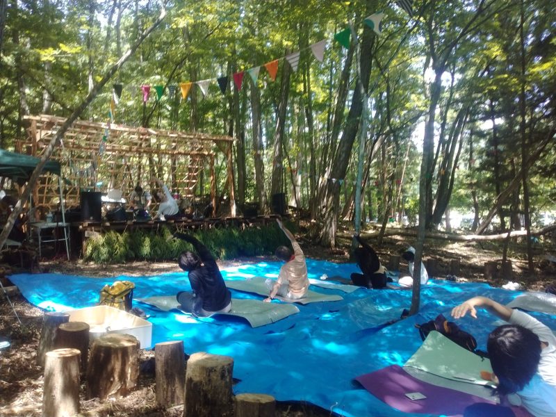 メインステージでは語りや音楽ライブ、太鼓や人形劇の公演などが行われ、特に森ヨガは自然の空気との相乗効果で参加者にとってとても充実した時間になったようでした。