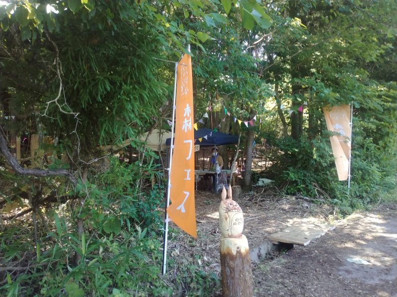 気温が体温に迫ろうかという真夏日の中、青々と伸びる森の木々が強い日差しから守ってくれて、会場の丸太の椅子に腰を掛けると心地よい風が流れます。