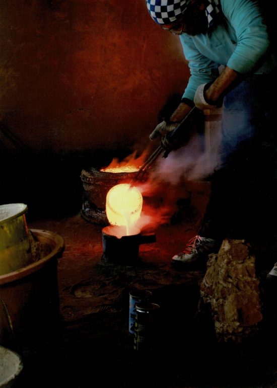 ▲鋳型に流し込む風景。